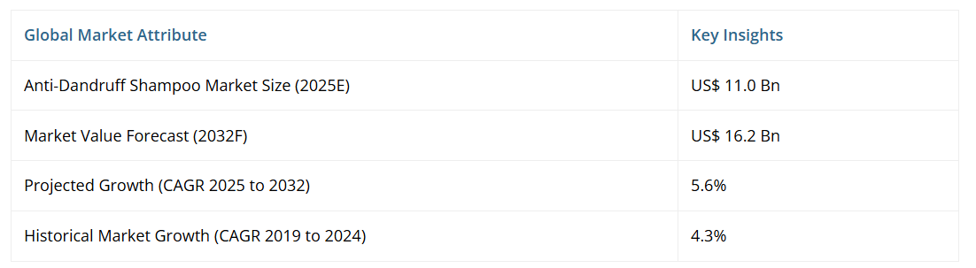 世界のフケ対策シャンプー産業は、2025年に110億ドル規模に達すると予測されており、2025年から2032年にかけて年平均成長率(CAGR)5.6%で拡大が見込まれます。予測期間中に162億ドル規模に成長する見通しです。