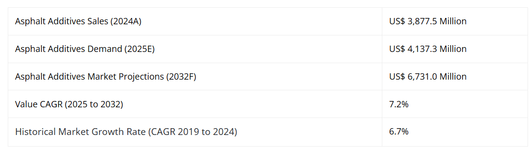 北米アスファルト添加剤市場見通し:過去実績(2019年~2024年)および予測(2025年~2032年)