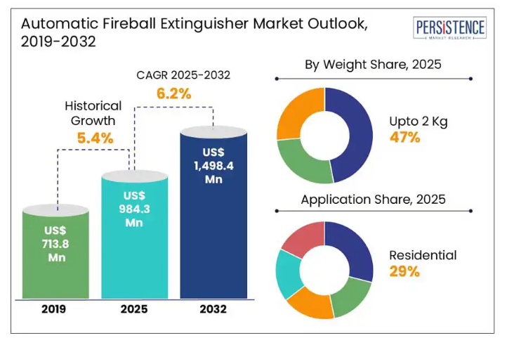 - 2kg以下のファイアボール消火器は、家庭、車両、小規模な囲い込み空間に適しているため、大量需要が見込まれています。