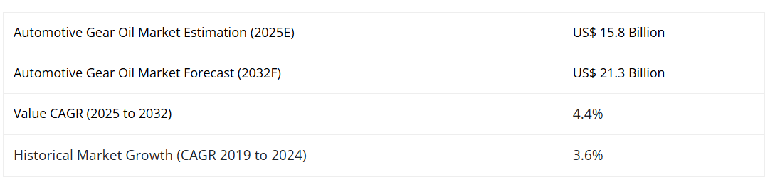 世界の自動車用ギアオイル市場規模は、2025年末時点で約158億ドルと評価されております。本市場は年平均成長率4.4%で拡大し、2032年までに213億ドルを超える規模に達すると予測されております。