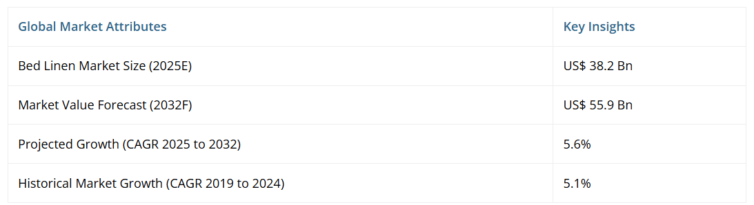 Persistence Market Researchの調査によれば、2019年から2024年までの歴史的期間において、世界のベッドリネン産業は約5.1%という堅調な年平均成長率(CAGR)を記録しました。この期間中、温度調節機能を備えた竹製シーツ分野で顕著な進展が見られ、機能性と快適性の両面で顧客満足度が向上しました。