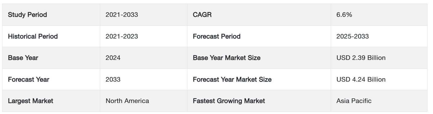 世界のコンクリート補強繊維市場規模は、2024年には23億9000万米ドルと評価され、2025年には25億4000万米ドル、2033年には42億4000万米ドルに達すると予測されています。予測期間(2025年~2033年)中のCAGRは6.6%で成長すると予測されています。
