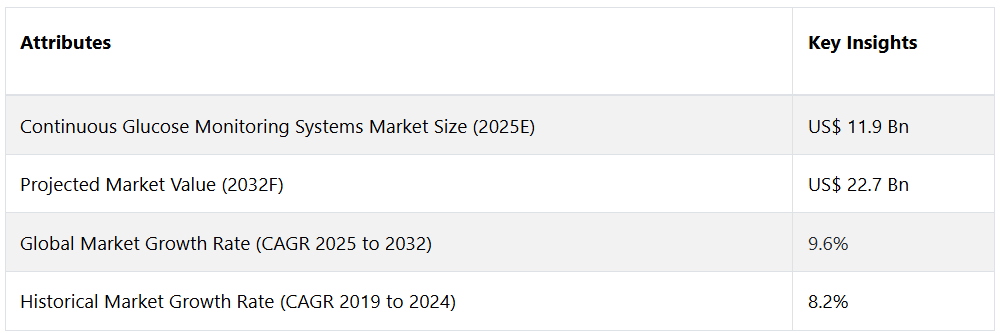 グローバルな持続血糖モニタリングシステム市場は、9.6%のCAGRで拡大し、2025年の119億ドルから、2032年末には227億ドルに増加すると予測されています。