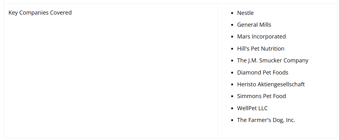 ダイレクト・トゥ・カスタマー(D2C)ペットフード市場で対象となる企業