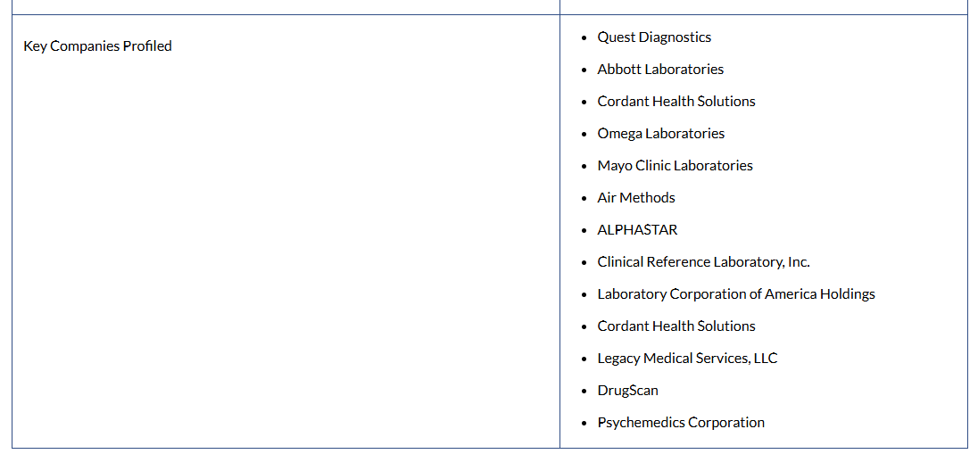 薬物乱用検査サービス市場で対象となる企業
