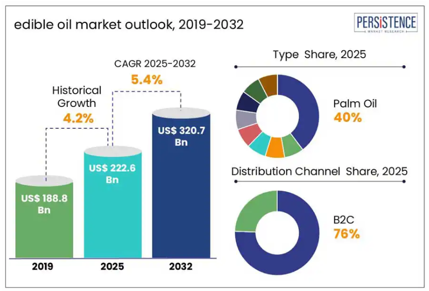 パーシステンス・マーケット・リサーチ社は、人口増加、ファストフード消費の拡大、栄養強化食用油製品の登場により、食用油の需要が拡大していると予測しております。