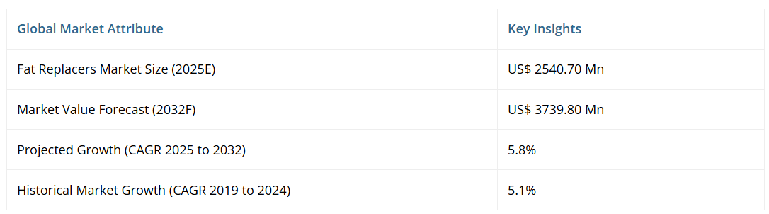 - 世界の脂肪代替品市場概況、2025年および2032年