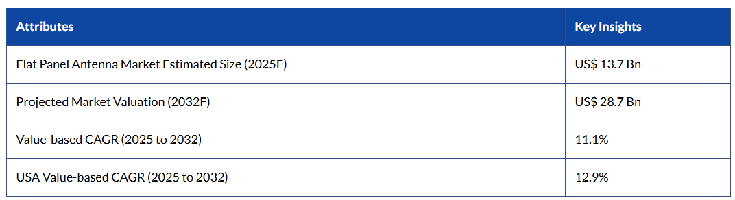Persistence Market Research(PMR)によると、フラットパネルアンテナの販売は、予測期間中に11.1%の年平均成長率(CAGR)を示すと予想されています。過去期間においては、市場は10.3%のCAGRを記録しました。