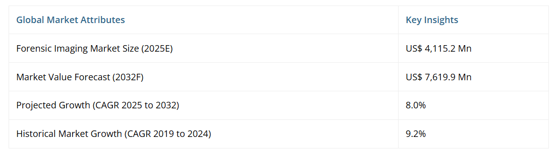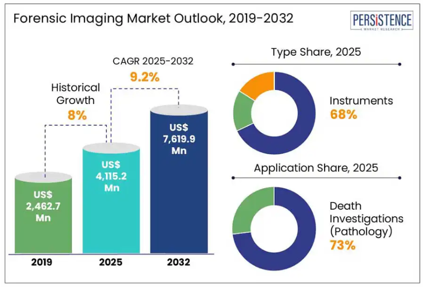 パーシステンス・マーケット・リサーチの報告書によりますと、技術進歩と非侵襲的捜査ツールへの需要増加により、法医学画像市場は急速に進化しております。