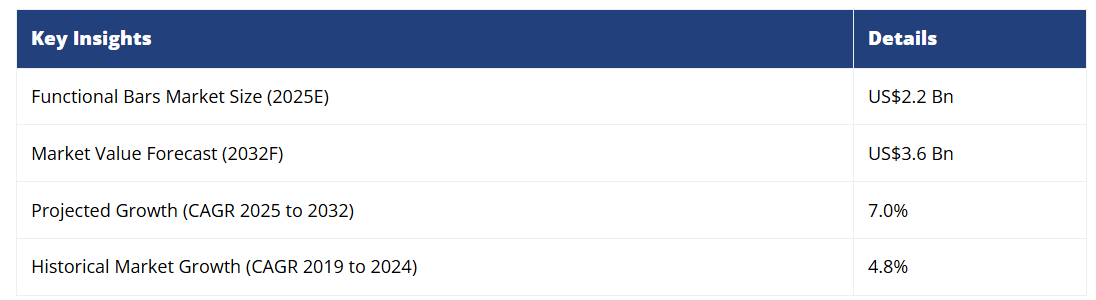 - 世界の機能性バー市場概況(2025年および2032年)