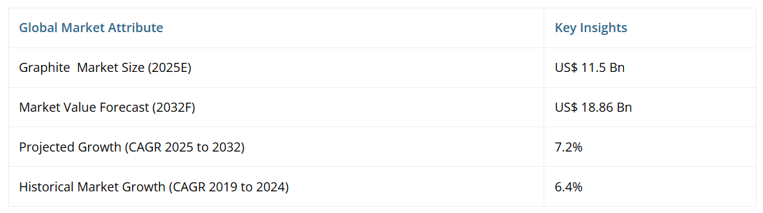 世界のグラファイト市場規模は、2025年の115億ドルから2032年までに188億ドルへ成長し、年平均成長率(CAGR)7.2%で拡大すると予測されております。エネルギー貯蔵、電子、冶金分野における需要増加を背景に、黒鉛産業は急速に拡大しております。