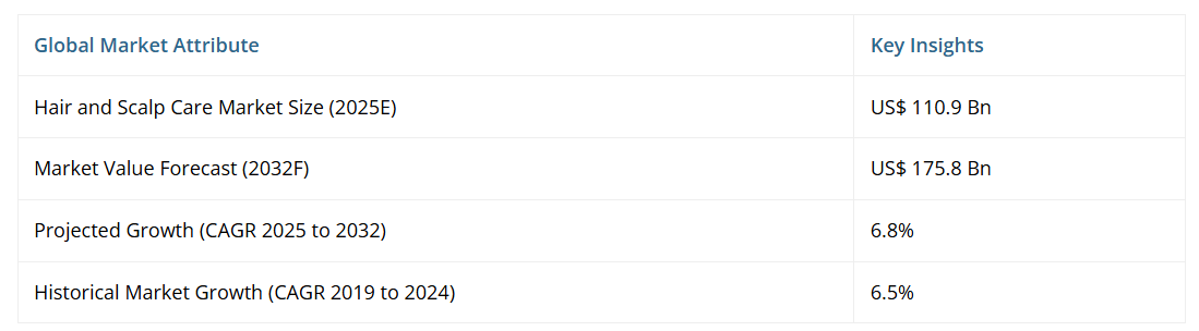 世界のヘアケアおよび頭皮ケア市場規模は、2025年の1,109億ドルから2032年までに1,758億ドルへ拡大し、2025年から2032年にかけて年平均成長率(CAGR)6.8%で成長すると予測されております。