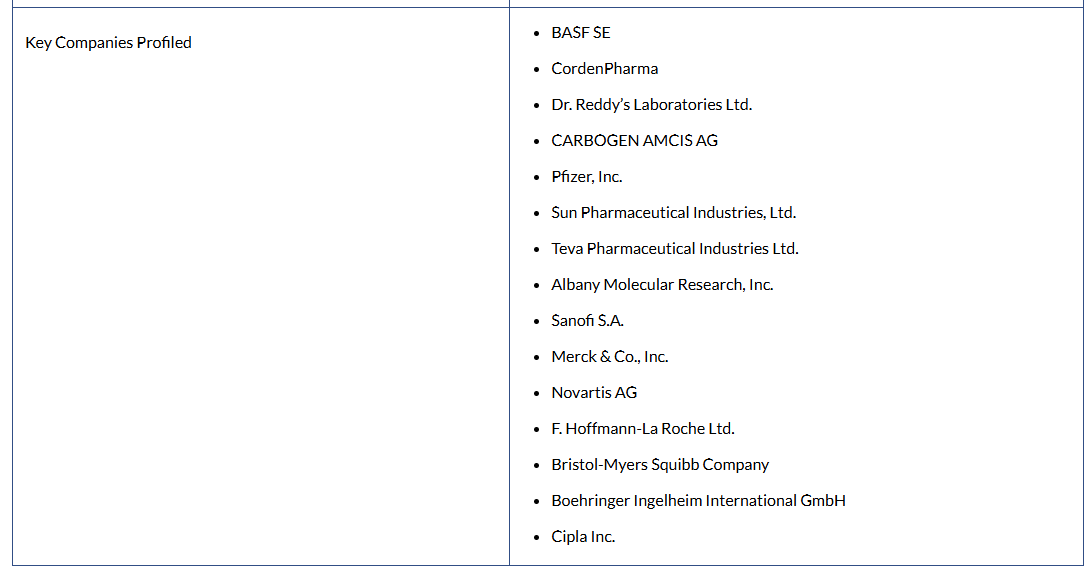 世界のハイポテンシー医薬品有効成分(HPAPI)市場の主要企業には、BASF SE、Sun Pharmaceutical Industries Ltd.、Dr. Reddy’s Laboratories Ltd.、Carbogen Amcis AG、およびPfizer Inc.があります。