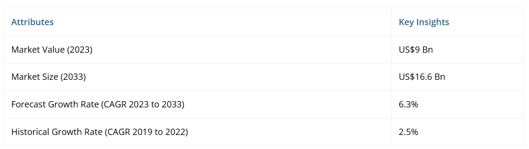 ホットメルト接着剤市場は、2023年から2033年の予測期間において年平均成長率(CAGR)6.3%で成長し、2033年までに166億ドル規模に達すると推定されております。