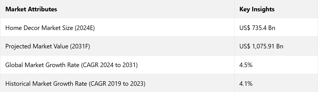これらのアイテムの購入には、Eコマースプラットフォームが人気で、業界の成長を加速させています。 近年、メーカーは家庭用インテリアデザインの強化に取り組んでいます。 家庭用装飾品の需要は、2024年から2031年の予測期間中に、4.5%という相当なCAGRを記録すると推定されています。