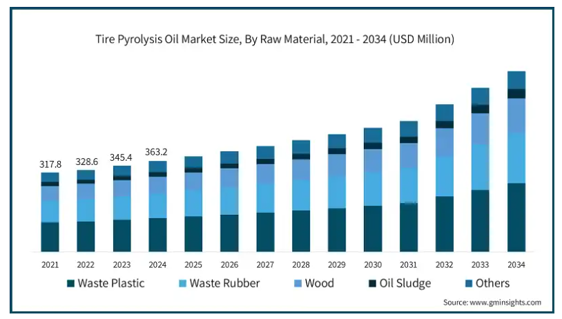 さらに、石油汚泥や木材残渣は、原料ソースを多様化する機会を提供し、市場の拡大をさらに後押しします。産業界が循環型経済モデルや環境に優しい生産方法を推進するにつれ、タイヤ熱分解プロセスへのこれらの原材料の統合は増加すると予想されます。規制圧力の高まりと技術の進歩により、タイヤ熱分解油の生産効率と収益性は今後数年で向上すると思われます。