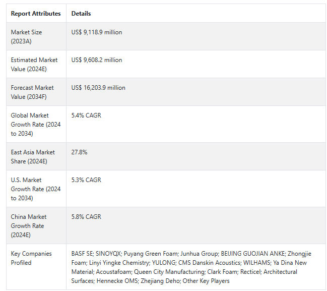 メラミン樹脂フォーム市場の展望(2024年〜2034年)