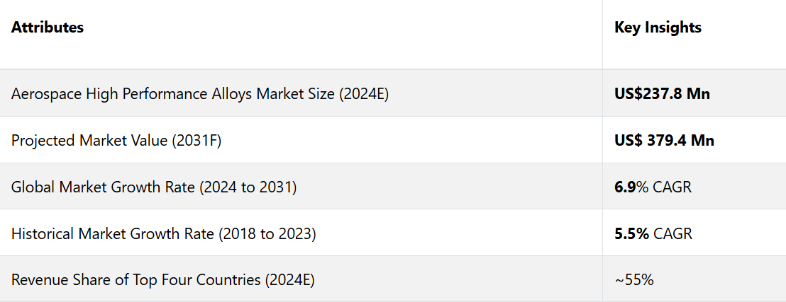 12. 中東およびアフリカの航空宇宙用高性能合金市場の見通し:2018~2023年の過去実績および2024~2031年の予測