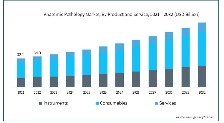 この調査レポートは、解剖学的病理学市場を詳細に調査し、2021年~2032年の収益(百万米ドル)を以下の分野別に予測・推計しています: