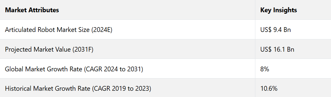 多関節ロボットの販売は、2024年から2031年の予測期間において、年平均成長率(CAGR)8%を記録すると推定されています。