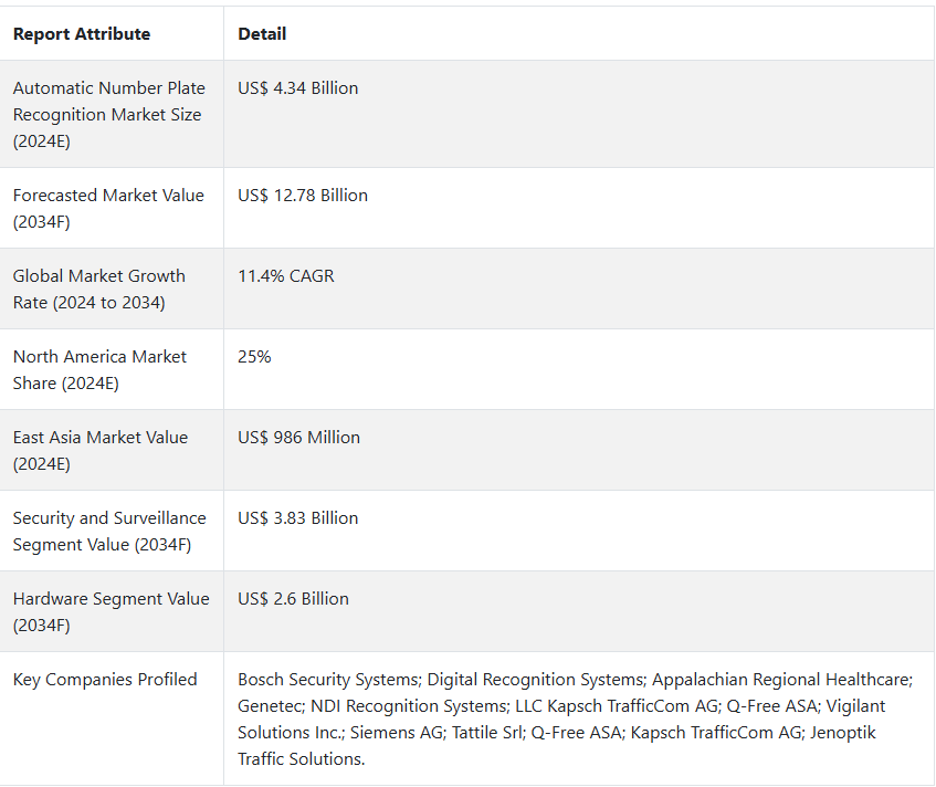 自動ナンバープレート認識の世界需要は、2024年から2034年にかけてCAGR 11.4%で増加すると予測される。
