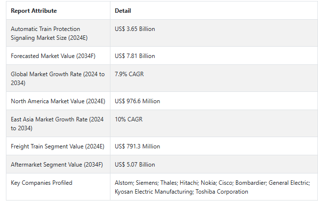 世界の自動列車保護信号市場は、2024年には36億5,000万米ドルの評価額となり、さらにCAGR 7.9%で拡大し、2034年には78億1,000万米ドルに達すると推定されます。