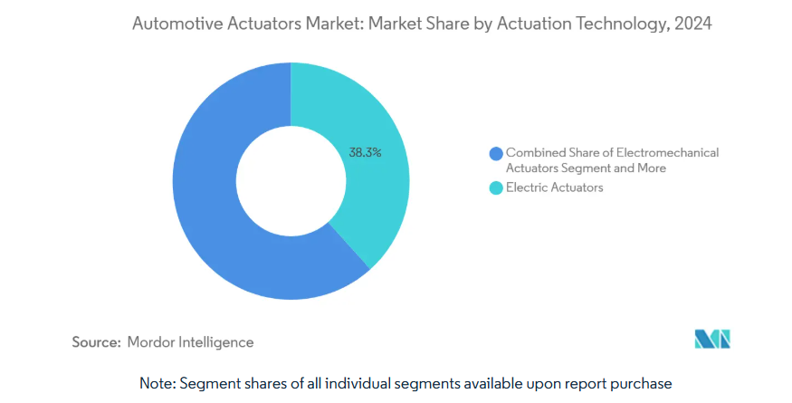 車両1台あたりの半導体価値は急騰する見込みで、AI対応制御ユニットの普及に伴い2030年までに倍増し、アクチュエーター部品表(BOM)に関連するコストを大幅に押し上げます。自動車用半導体市場は2032年までに大幅な拡大が見込まれており、アクチュエーター用電子制御ユニット(ECU)がこの成長の顕著なシェアを占める見通しです。スマートマテリアルアクチュエーター(SMA)は洗練された省スペース設計ながら、高価な原材料と複雑な加工コストを伴うため、現状では高級車への限定的な採用に留まっています。