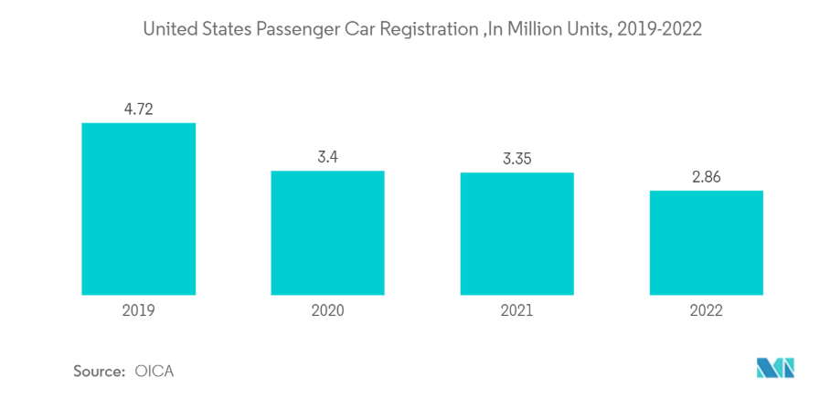 上記の要因により、車両安全ソリューションへの需要は増加する見込みです。これにより、2024年から2029年にかけて調査対象市場の成長が促進されると予想されます。