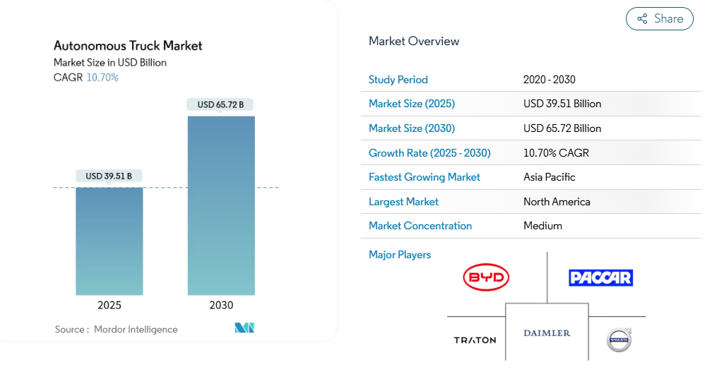 世界の自律走行式トラック市場:小型トラック、その他(2025年~2030年)