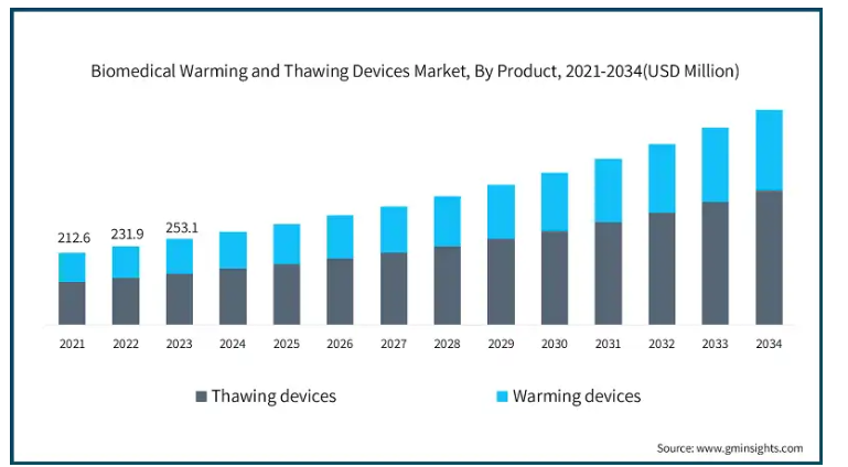 さらに、Cytiva社やHelmer Scientific社がアメリカの医療システム向けの解凍ソリューションの開発に注力していることから、再生医療や体外受精の応用研究開発に重点が置かれるようになり、解凍システムが必要とされています。