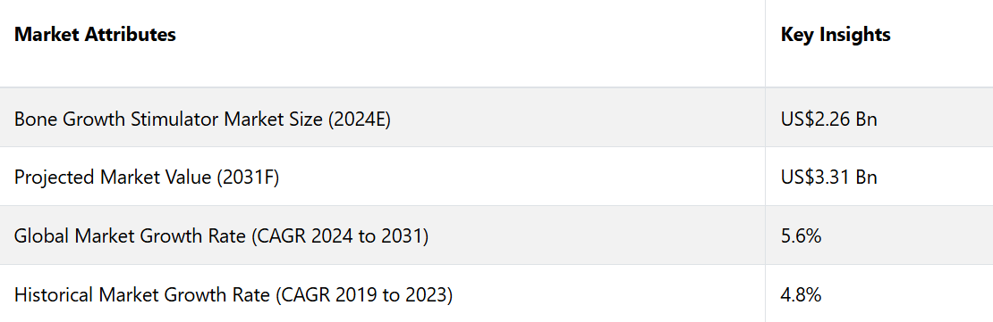 - 医療提供者の技術革新と治療オプションの改善により、効果的な骨成長刺激剤の需要が高まると予想される。