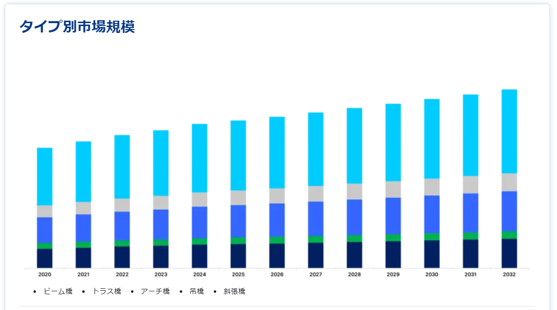 本レポートは、橋梁建設市場に関する詳細な分析を提供しており、以下の主要な要素に焦点を当てています。