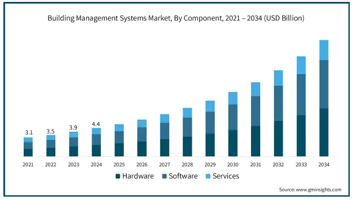 ソフトウェア分野は、予測期間中にCAGR 16.5%を超える大きな成長が見込まれています。この成長は、エネルギー効率とコスト削減が重視されるようになったためです。コンピュータ保全管理ソフトウェア(CMMS)、設備最適化ソフトウェア、ビルディングオートメーションソフトウェア、HVAC制御ソフトウェアなどのBMSソフトウェアは、メンテナンスと修理活動を管理し、建物のエネルギー効率を最適化し、資産情報を管理します。