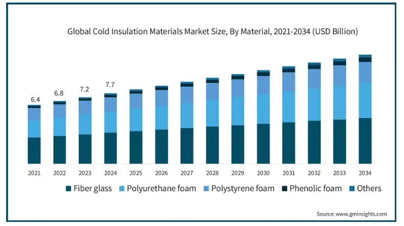 保冷材の世界市場(2025-3034):材料別(ガラス繊維、ポリウレタンフォーム、ポリスチレンフォーム、フェノールフォーム、その他)、断熱種類別、用途別