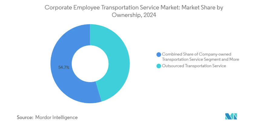 2024年、アウトソーシング型輸送サービスは企業従業員輸送サービス市場の45.33%を占め、車両維持・運転手管理・規制順守を外部委託する資産軽量化戦略への企業転換を浮き彫りにしました。レンタル・リースは7.21%のCAGRで最も成長が速い所有形態であり、ハイブリッド勤務スケジュールに対応する柔軟なキャパシティを提供し、季節的な需要急増時の迅速な拡張を可能にします。セキュリティ要件の高い業界では自社所有運営が継続していますが、資本集約性と迫り来る排出規制が拡大意欲を抑制しています。
