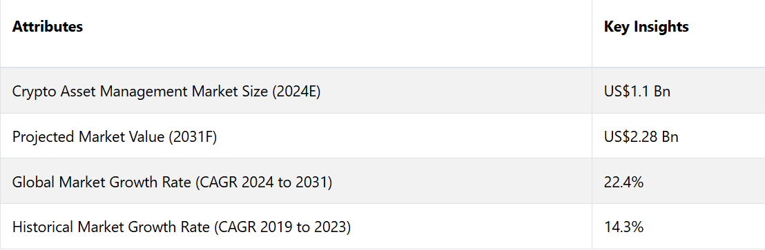 暗号資産運用市場のトレンドと要因が市場拡大を推進している。これには、暗号通貨の機関投資家による採用増加、および資産運用能力を強化する継続的な技術革新が含まれる。市場が成熟するにつれ、多くのプレーヤーを引き付け、金融業界における地位をさらに強固なものにしていくことが予想される。
