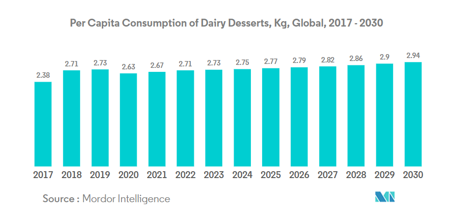 乳製品デザートの消費は、食品・飲料への消費者支出の増加、新フレーバーの導入、衝動買いの増加といった要因により促進されています。