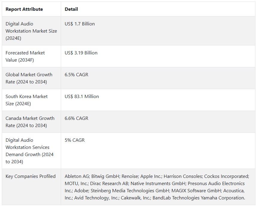 デジタル・オーディオ・ワークステーション(DAW)のグローバル市場:市場規模推移、成長予測、主要企業情報2024年~2034年