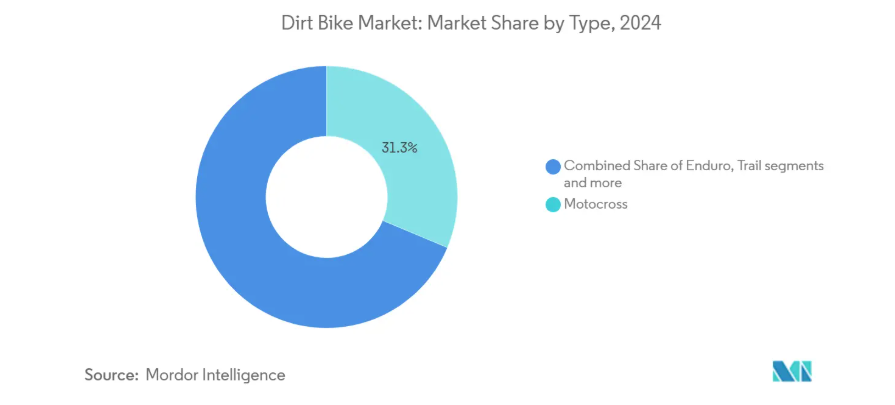 ハイブリッド実験は依然としてニッチな存在であり、重量増によるオフロードでの機動性低下という課題に阻まれています。しかしながら、交換式バッテリープラットフォームは、2030年までに電動二輪車の普及率80%を目標とするインドネシアやインドにおいて、政策面での支持を得つつあります。このようなインフラ標準化は、新規参入のバッテリーアグリゲーターをサプライチェーンの中核的役割へと躍進させ、ダートバイク市場における競争経済の基盤を根本的に再構築する可能性があります。