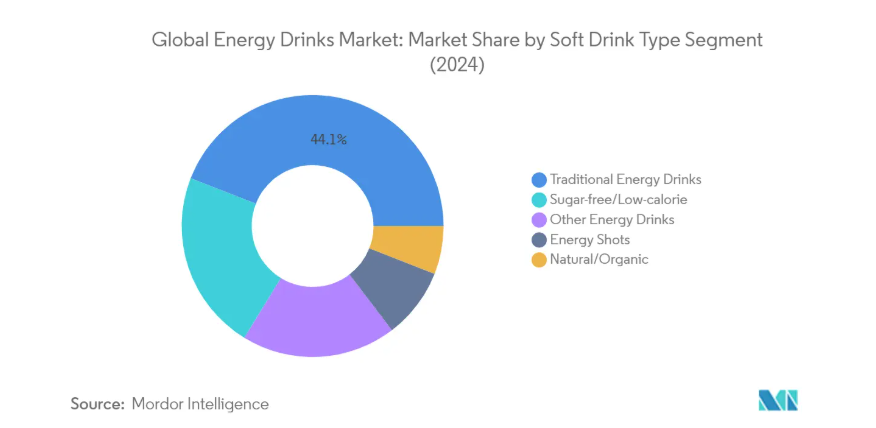 消費者の健康意識の高まりに応え、産業ではより健康的かつ自然な配合への顕著な移行が進んでいます。2023年には、英国の消費者の約72%が、天然成分と健康効果を兼ね備えたエナジードリンク市場を好むと回答しました。この傾向は特定の市場で特に顕著であり、2023年にはニュージーランド人の81%がオーガニック製品を好むと示しています。メーカーはこれに対応し、ガラナ、マテ茶、緑茶エキスなどの天然成分を配合するとともに、人工添加物の削減または排除を進めています。