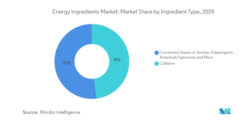 市場の進化は、エネルギー成分が従来型の形態を超えて拡大する中、消費者嗜好の広範な変化を反映しています。特にタンパク質強化は、スナック、飲料、デザートなど様々な製品カテゴリーで顕著な存在感を示しています。栄養補助食品分野は、正確なエネルギー補給量を必要とする消費者のニーズに応え、着実な成長を続けています。スポーツ栄養パウダーは、アスリート以外の幅広い消費者層に受け入れられ、採用が拡大しています。医療分野では、タウリンなどの化合物とその潜在的な心血管健康効果に関する継続的な研究に支えられ、医薬品および臨床栄養分野での応用が新たな市場機会を開拓しています。
