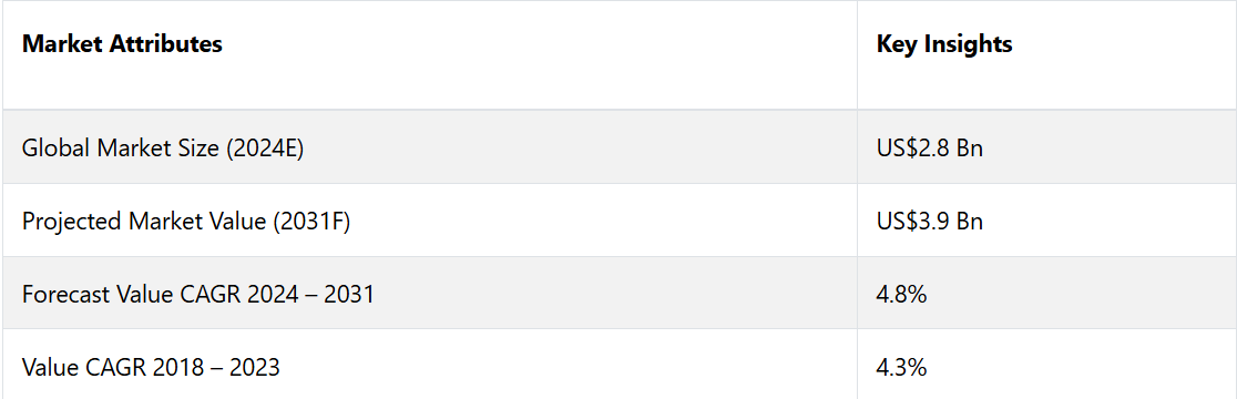 世界の経腸栄養補給装置市場は、2024年に28億米ドルと推定されるのに対し、2031年末には39億米ドルに達すると予測されています。この市場は、2024年から2031年までの今後数年間、年平均成長率(CAGR)4.8%を確保すると見込まれています。