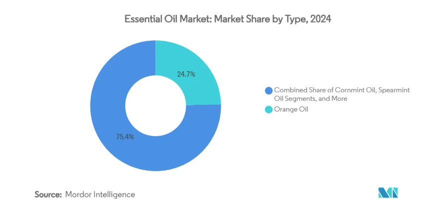 世界の精油市場:オレンジ油、コーンミント油、その他(2025年~2030年)