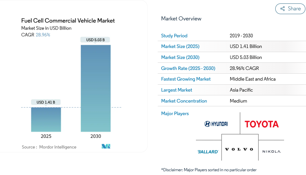 世界の燃料電池商用車市場:プロトン交換膜燃料電池、その他(2025年~2030年)