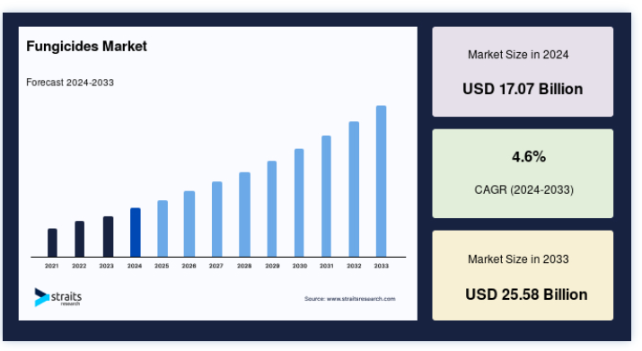 都市化と工業化により、耕作可能な土地は日々少なくなっている。 その一方で、食糧需要の増加に対応するため、農作物の収穫量を増やさなければならないというプレッシャーが常にある。 食糧需要の増加に対応するため、農家は限られた耕地で大量の食用穀物を生産・供給しなければならない。 農家は、様々な菌類関連の病気から作物を守るために適切な量の殺菌剤を使用しており、最終的に殺菌剤の需要を増大させている。