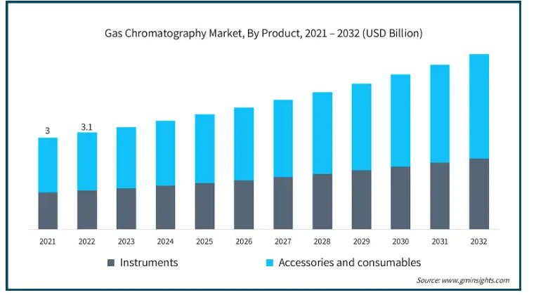 これらの部門による支出は、ガスクロマトグラフィによる複雑な混合物の正確な分析と微量不純物の抽出を可能にする高度な制御システムに資金を提供することで、ガスクロマトグラフィ機器の開発に大きな影響を与えます。これらの機器に対する需要の急増は予測されており、2032年には約152億ドルの評価に達すると考えられています。