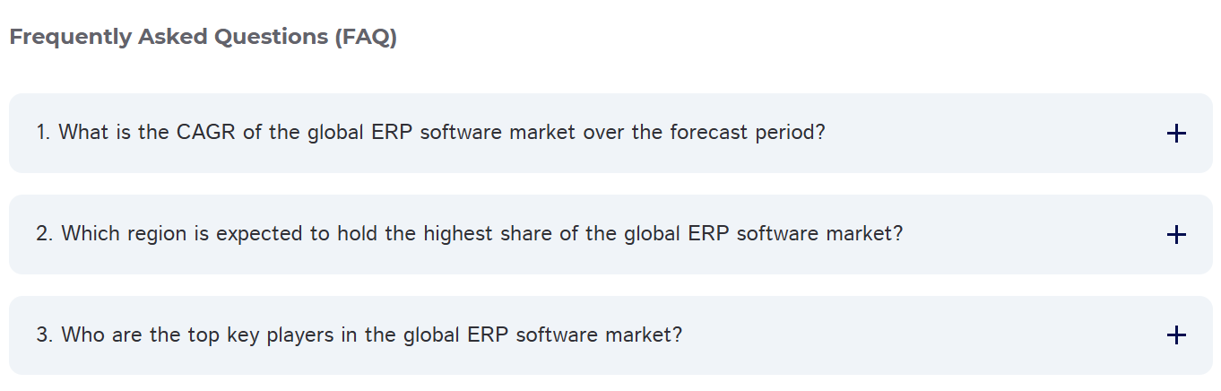 - 2023年4月、テクノロジー企業であるERP Researchは、コンサルタント、パートナー、ベンダー向けのERPモジュールおよびソフトウェアに関する最も完全なデータベースを作成したと発表した。 同社は、ERPプロジェクトの準備、ERPソフトウェアの比較、要件に応じた適切なERPパートナーの特定を支援している。 ERP Researchは、2023年に最適なERPシステムを特定し、人気のERPソリューションを分析し、企業や企業向けに広範なERP比較を提供することを目指している。