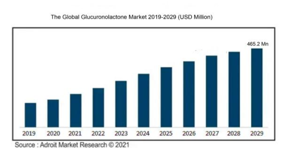 グルクロノラクトンはまた、肝硬変、関節リウマチ、食中毒などの治療に処方される薬に使用される製薬業界にも応用されている。消費者行動の変化は、世界のグルクロノラクトン市場の成長を促進する主な要因である。全体的な消費支出の成長もまた、エネルギー飲料の需要を促進し、したがって、予測期間中の世界グルクロノラクトン市場規模を促進すると予測されている。