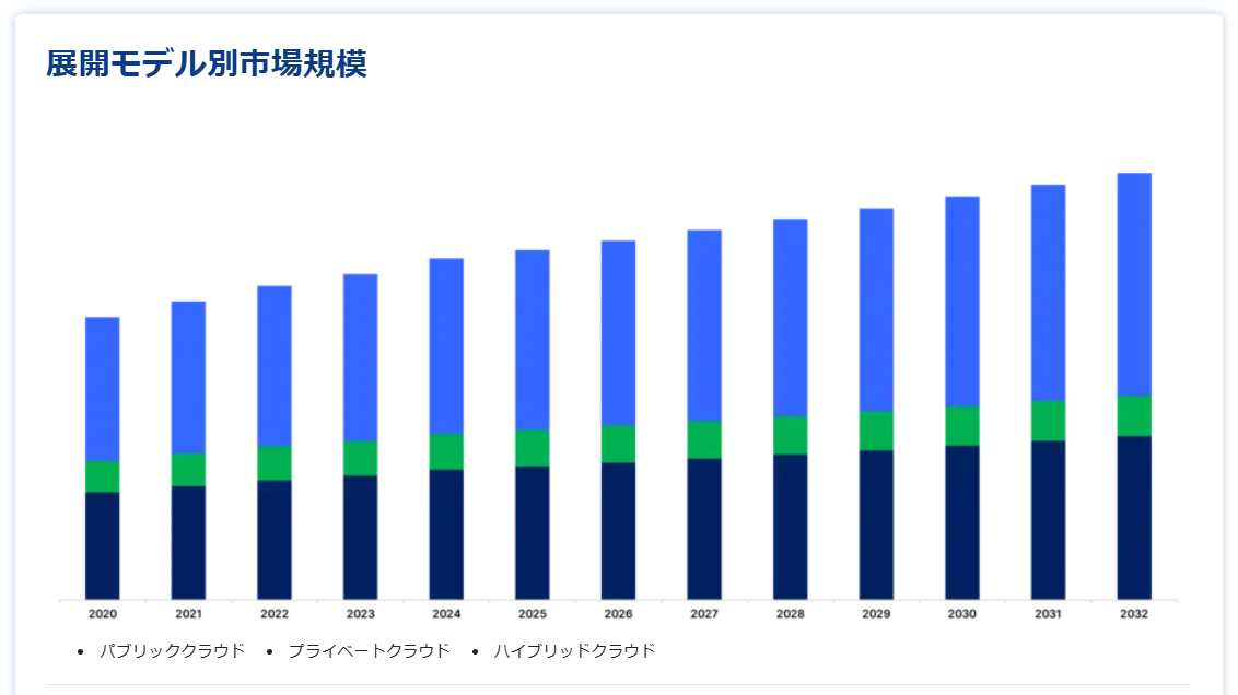 Infrastructure-as-a-Service(IaaS)のセクションが2番目に大きな市場シェアを占めるだろう。 IaaSはあらゆるプラットフォームやアプリケーション上で実行できるため、他のクラウドレイヤーの中で最も自由度の高いレイヤーとみなされている。 IaaSの拡大は、オンプレミスのシステムに対する需要が最も高いときに、ワークロードをクラウドに移行できる能力に起因している。 オンラインで展開・管理されるインスタント・コンピューティング・インフラは、サービスとしてのインフラとして知られている。 IaaSの重要なコンポーネントには、アナリティクス、ウェブアプリ、ハイパフォーマンス・コンピューティング、テストと開発、ウェブサイトのホスティングなどがある。