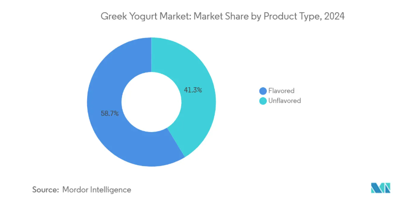 フレーバー付きギリシャヨーグルトは2024年に58.7%の市場シェアを占めており、健康志向の消費パターンの中で多様性と贅沢な体験を求める消費者の嗜好を反映しています。無添加セグメントの2030年までの年平均成長率(CAGR)が9.7%と加速していることは、利便性重視のフレーバーよりも汎用性と原材料の透明性を重視する洗練された消費者行動を示しています。スーパーフード、植物性素材、文化にインスパイアされたプロファイルを組み合わせた職人技のフレーバー開発は、プレミアム価格設定の機会を生み出し、大衆市場向け製品との差別化を図っています。